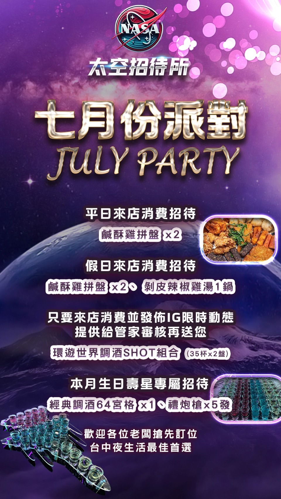 7/01-7/19(期間活動) 太空招待所.不定期優惠,歡迎私訊官方賴@090idzcv